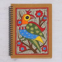 Madhubani Style Blank Handmade Paper Journal 'Peacock Majesty' Item ID: 2671791788