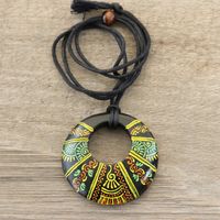 Madhubani-Style Ceramic Pendant Necklace from India 'Madhubani Glory' Item ID: 2669956190