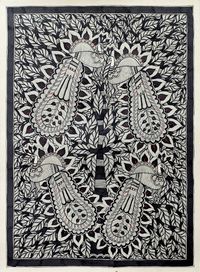 Bharti has dedicated her life to the preservation of Madhubani painting. She is viewed as an authority in the field and has trained dozens of aspiring artists in this ancient style, many of whom are now able to earn a living through the practice of this art. In her own paintings, Bharti brings a contemporary intellectual edge to this ancient Indian folk art. She has received numerous awards for her paintings but the one she treasures most is the National Award for Excellence in Handicrafts, also known as the President's Award - it was her long-held dream to receive it.