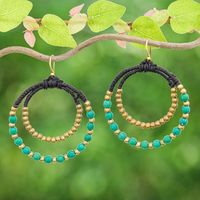 Magnesite and Brass Beaded Double Hoop Dangle Earrings 'Sea Green Glam' Item ID: 2671798165
