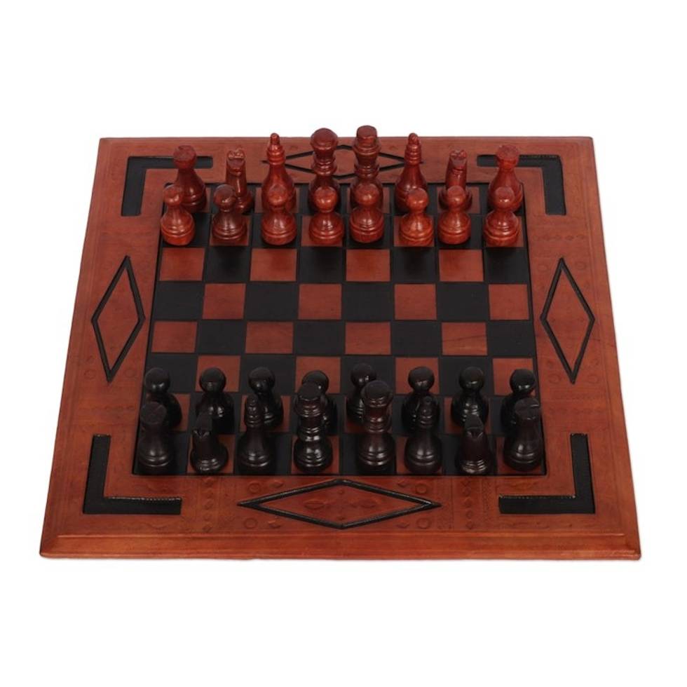 Mahogany and Leather Chess Set Handcrafted in Ghana 'Spider' Item ID: 2671806686