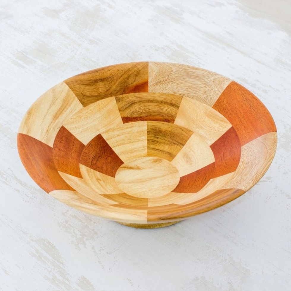 Mahogany and Palo Blanco Wood Fruit Bowl Crafted by Hand 'Stairway of Nature' Item ID: 2669933568