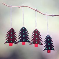 Mahogany Wood Hand Painted Tree Ornaments Set of 4 'Starlit Tree' Item ID: 2671736197