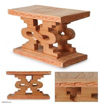 Mahogany wood throne stool 'Wisdom and Hope' Item ID: 2671806990
