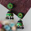"Terracotta jewelry is crafted with clay which is procured from the river bed. After the piece is ready, it is baked in the oven and then hand-painted with vibrant colors and finally varnished with toxic-free lacquer.