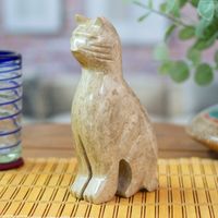 Marble Cat Sculpture in Beige from Mexico 'Cafe Cat' Item ID: 2671808869
