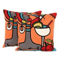 Margarita-Themed Embroidered Cotton Cushion Covers Pair 'Margarita Time' Item ID: 2669892208