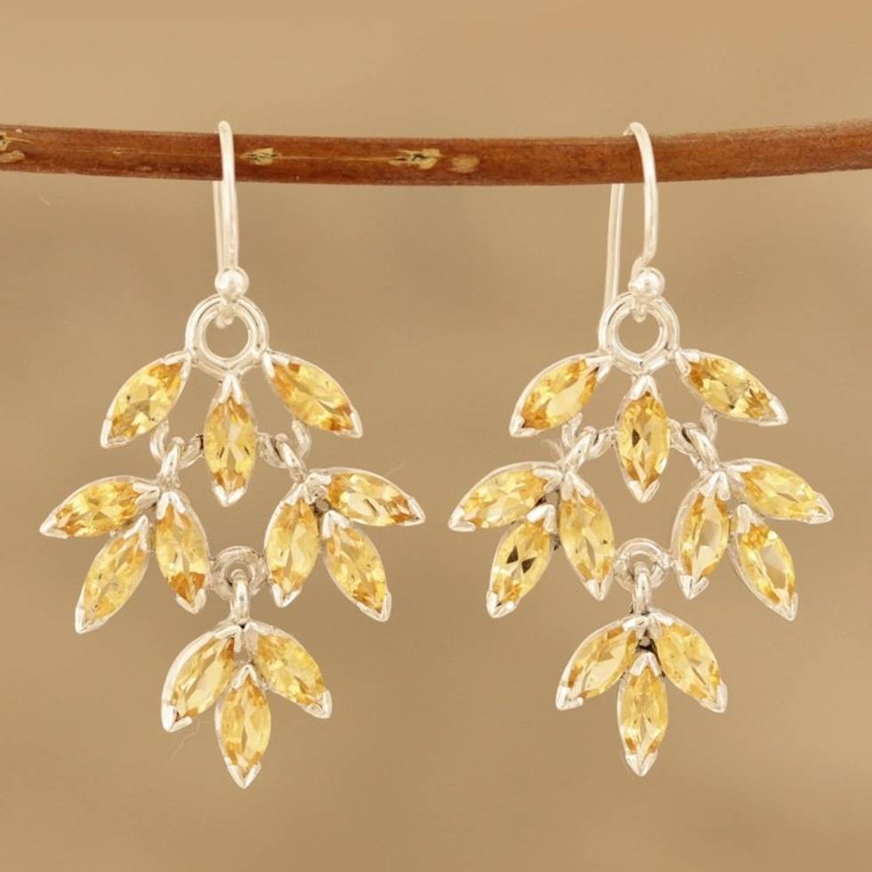 Marquise Citrine Dangle Earrings Crafted in India 'Glittering Autumn' Item ID: 2671619813