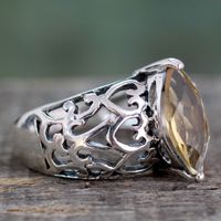 Marquise Citrine Single Stone Silver Ring from India 'Love Sonnet' Item ID: 2669924457