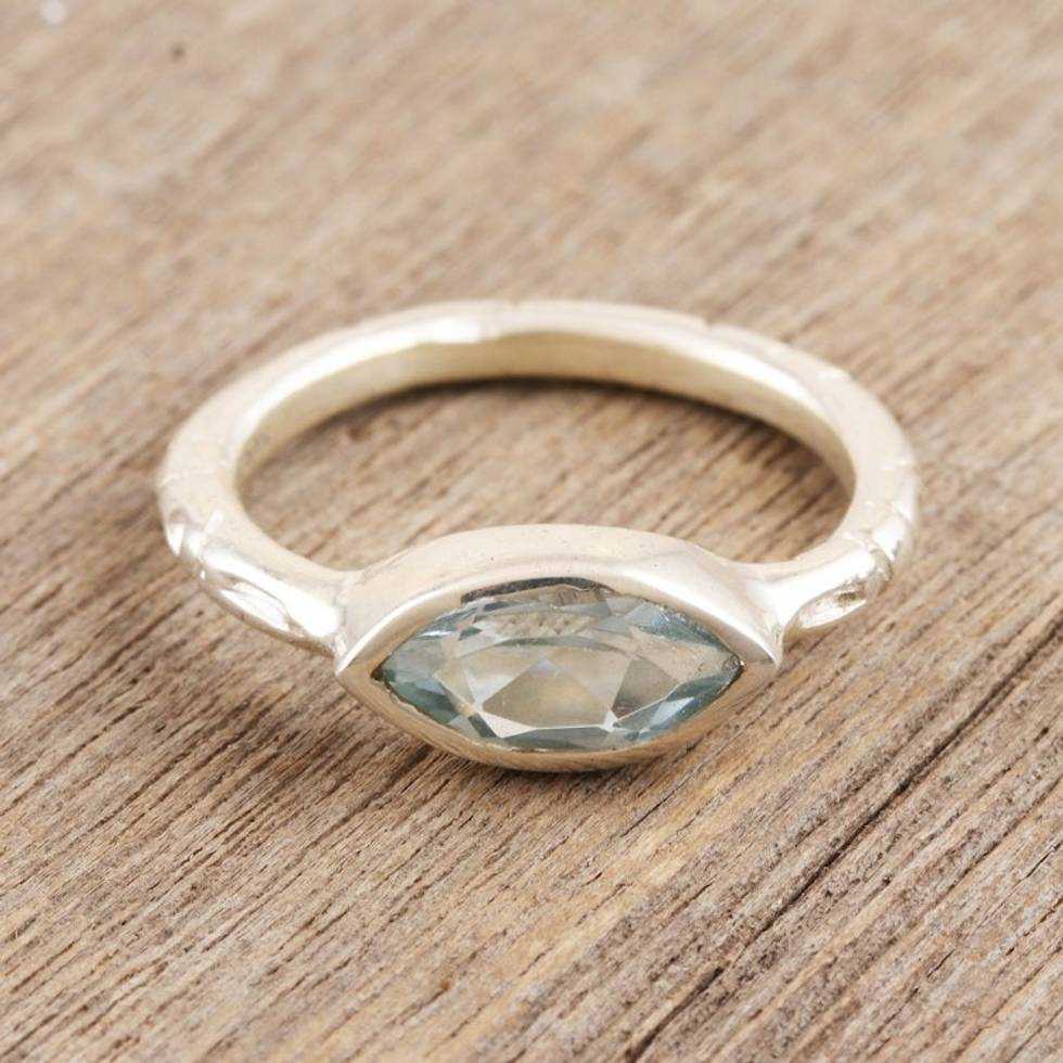 Marquise Cut Blue Topaz Ring from India 'Delicate Eye' Item ID: 2669924531