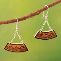 Mate Gourd Sterling Silver Dangle Earrings with Inca Motif 'Trendy Petite Trapeze' Item ID: 2671694341