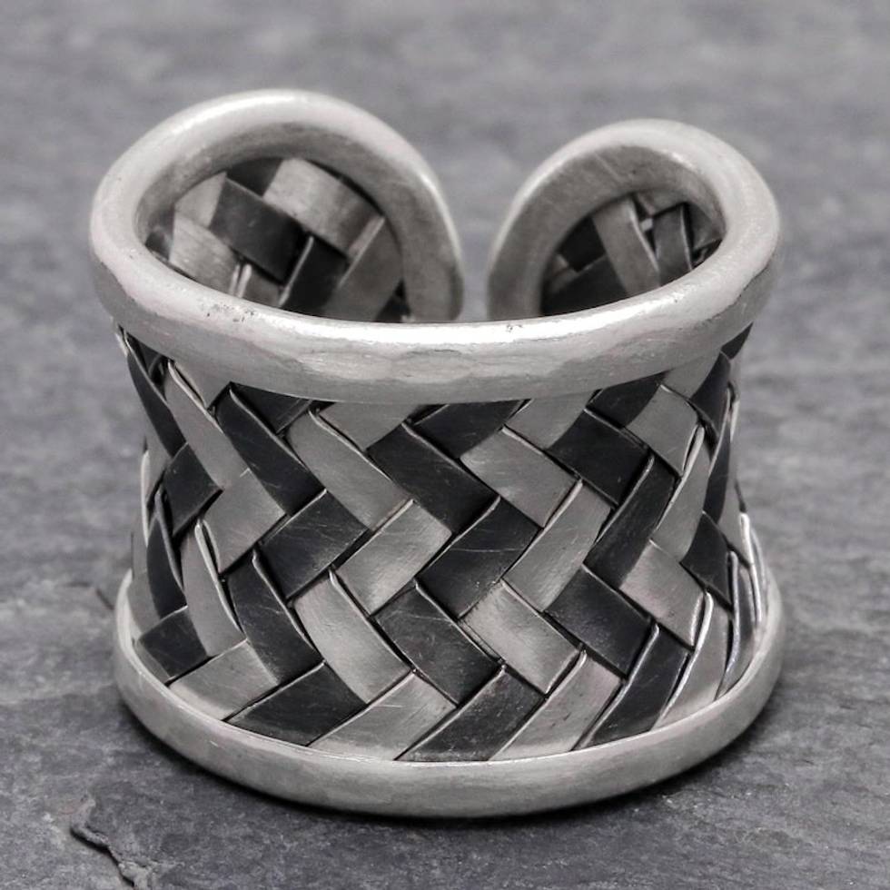 Matte and Oxidized Woven Silver Band Ring 'Dark Path' Item ID: 2671800521