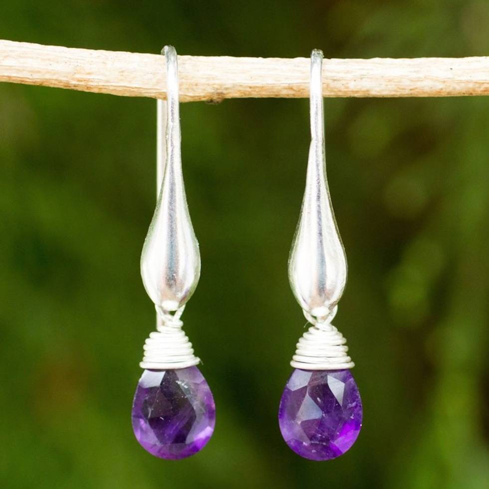 Matte Finish Sterling Silver and Amethyst Dangle Earrings 'Sophisticated Purple' Item ID: 2671801869