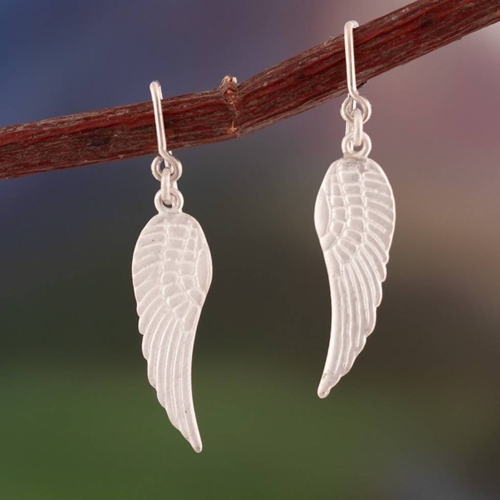 Matte-Finished Wing-Themed Sterling Silver Dangle Earrings 'Infinite Flight' Item ID: 2671697777