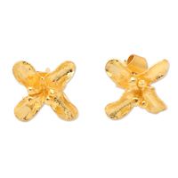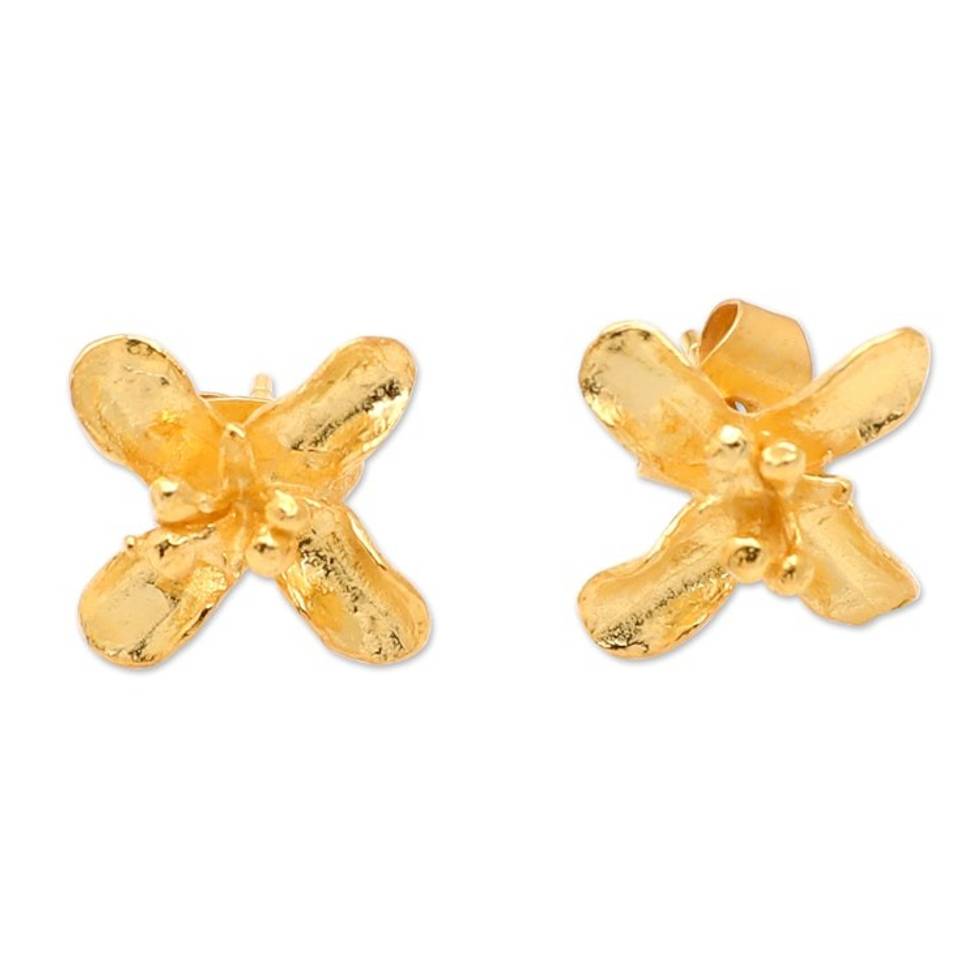 Matte Floral 18k Gold-Plated Sterling Silver Button Earrings 'Sun Clover' Item ID: 2671763412