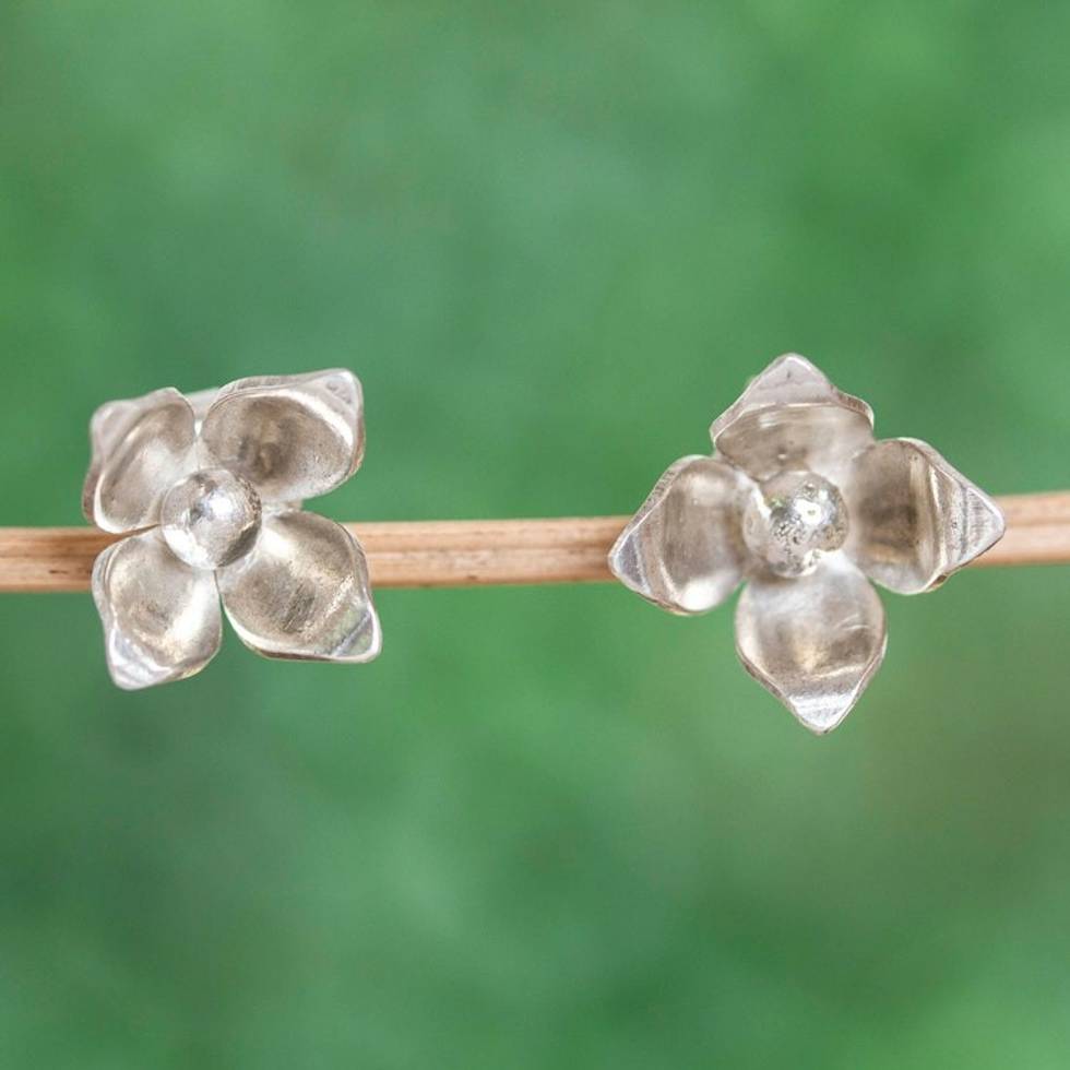 Matte Sterling Silver Button Earrings 'Olive Flower' Item ID: 2671808259