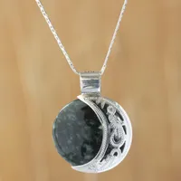 Maya Eclipse Pendant Green and Black Jade on Silver Jewelry 'Quetzal Eclipse' Item ID: 2669933707