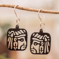 Maya-Themed Eco-Friendly Reclaimed Wood Carved Earrings 'Mayan Essence' Item ID: 2676659702