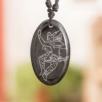 Maya-themed Unisex Adjustable Jade Pendant Necklace 'Dancing Maya' Item ID: 2671771674