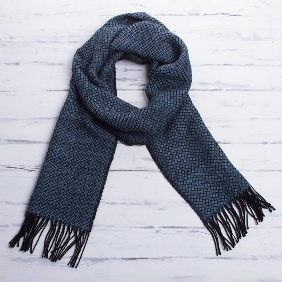 Men's 100 alpaca scarf 'Lake Arapa Night' Item ID: 2669891273