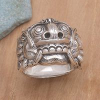 Men's Artisan Crafted Sterling Silver Band Ring 'Rangda' Item ID: 2671698285