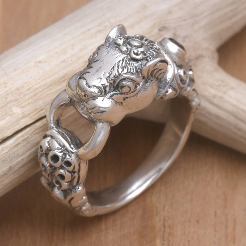 Men's Artisan Crafted Sterling Silver Ring 'Silver Tiger' Item ID: 2671667501