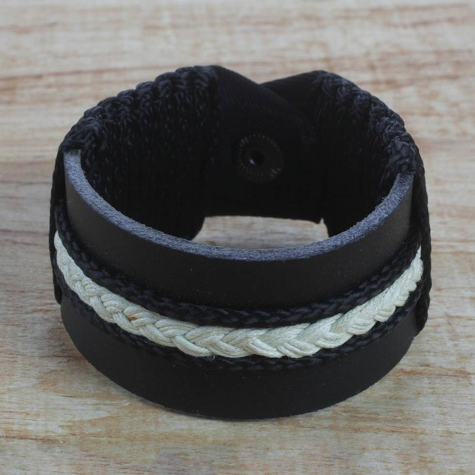 Men's Black Leather and Braided Cord Wristband Bracelet 'Band of Brothers' Item ID: 2671803930