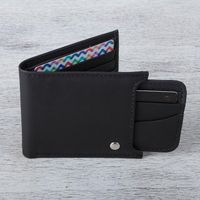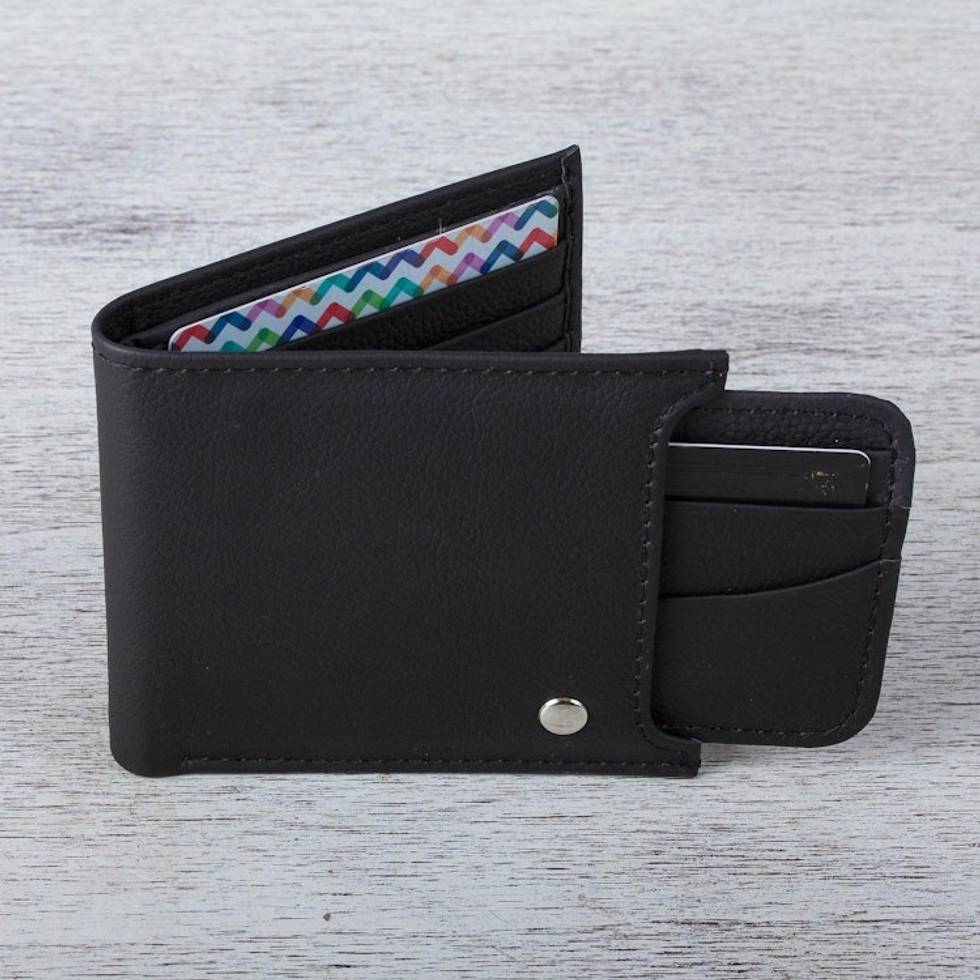 Men's Black Leather Wallet with Removable Card Case 'Nocturnal Trail Blazer' Item ID: 2669897314