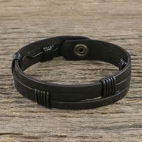 Men's Black Leather Wristband Bracelet with Brass Snap 'Commander in Black' Item ID: 2669927264