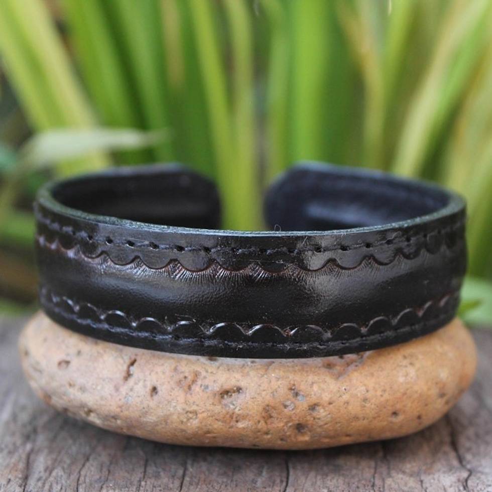 Men's Black Tooled Leather Cuff Bracelet 'Casual Black Thai' Item ID: 2671641042