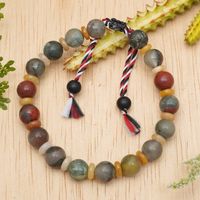 Men's Bloodstone and Onyx Yoga Tridatu Wristband Bracelet 'Tridatu Unity' Item ID: 2671583729