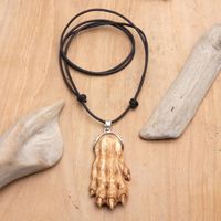 Men's Bone Leather 925 Silver Wolf Hand Pendant Necklace 'Wolf Hand' Item ID: 2671763101