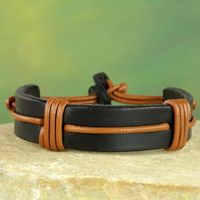 Men's Brown and Black Leather Wristband Bracelet from Ghana 'Enduring Strength' Item ID: 2671800846