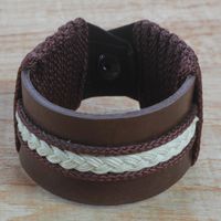 Men's Brown Leather with Braided Cord Wristband Bracelet 'Fraternal Love' Item ID: 2671800948
