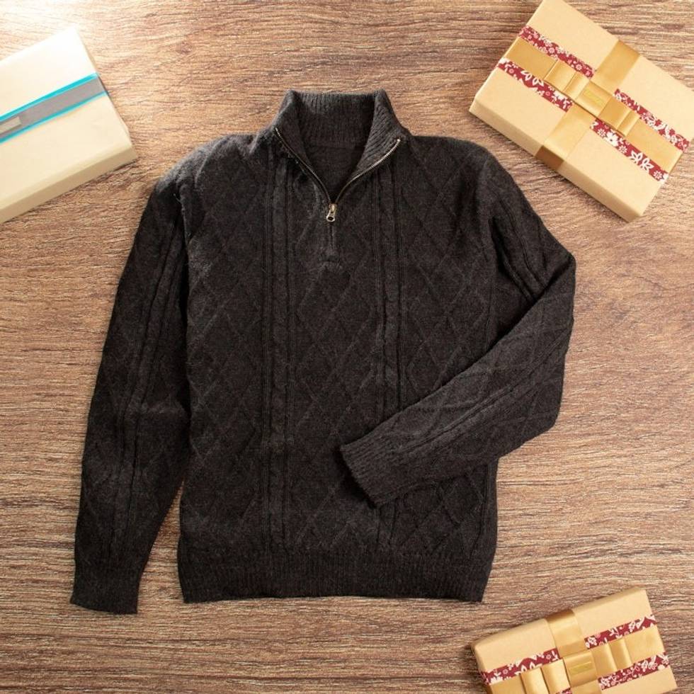 Men's Cable Knit Patterned Black 100 Alpaca Sweater 'Dark Space' Item ID: 2669904204