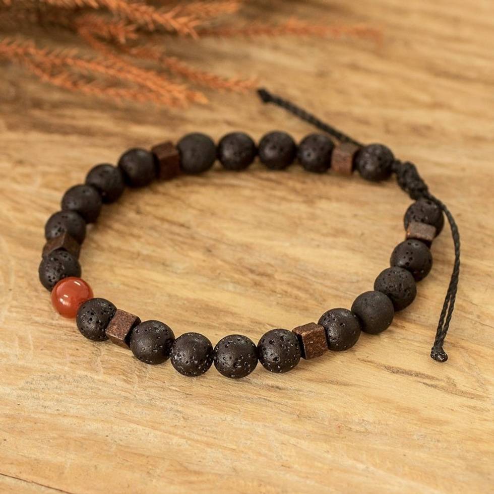 Men's Carnelian Lava Stone and Wood Beaded Diffuser Bracelet 'Absolute Vitality' Item ID: 2669933875