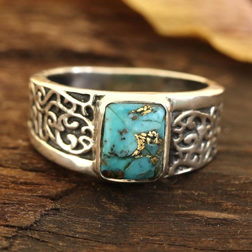 Men's Composite Turquoise Sterling Silver Band Ring 'Bold Vine' Item ID: 2669924526