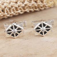 Men's Cubic Zirconia and Sterling Silver Cufflinks 'Best Dressed' Item ID: 2671788322