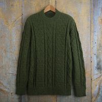 Men's Dark Green 100 Alpaca Pullover Sweater From Peru 'Moss Braids' Item ID: 2671819256