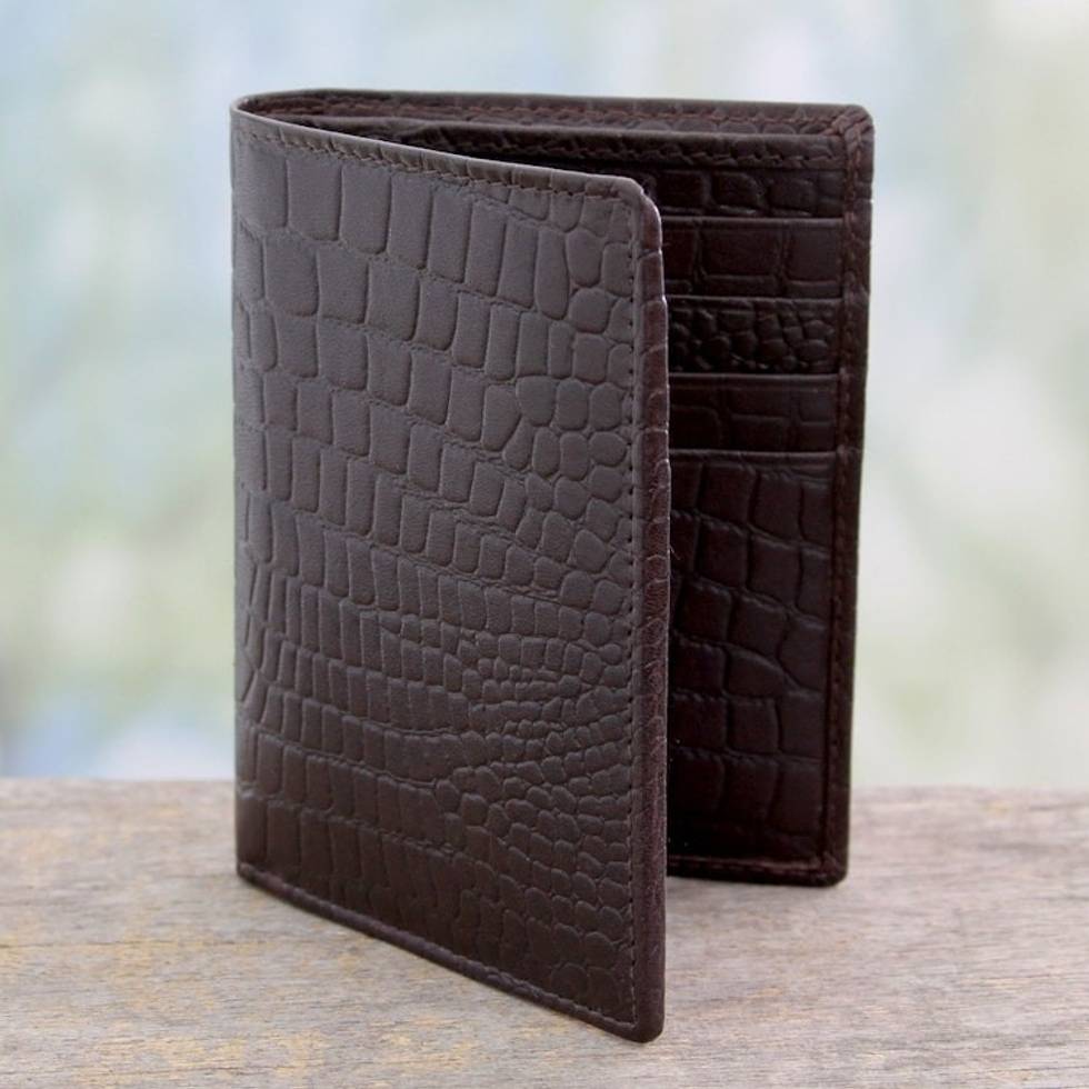 Men's Embossed Handcrafted Brown Slim Leather Wallet 'Efficient in Brown Crocodile' Item ID: 2671621509
