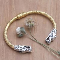 Men's Gold-Plated Sterling Silver Cuff Bracelet 'Dragon's Treasure' Item ID: 2671748469
