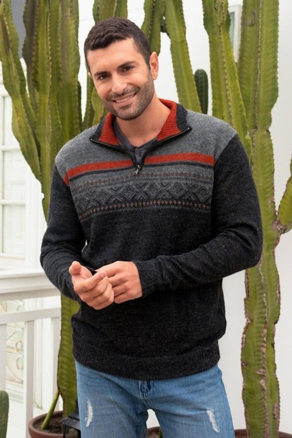 Men's Grey 100 Alpaca Pullover from Peru 'Winter Traveler' Item ID: 2671667576