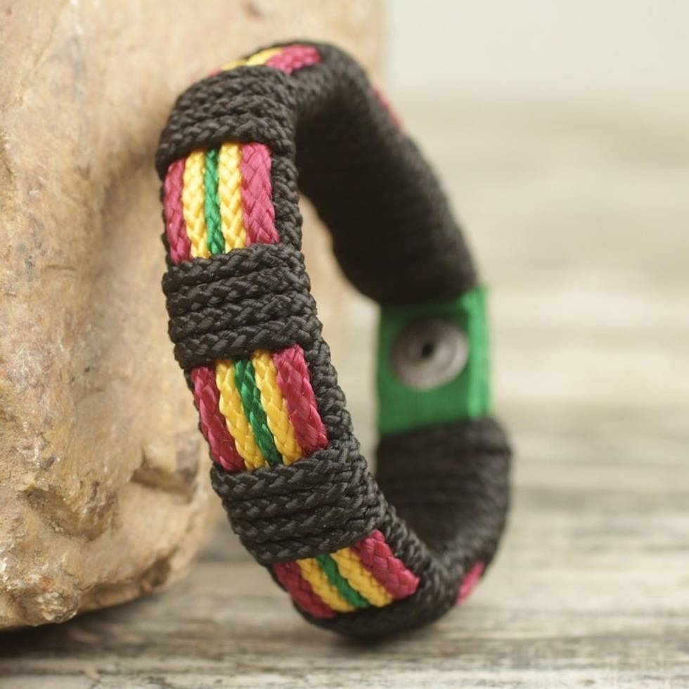 Men's Hand Crafted Cord Wristband Bracelet Reggae Colors 'Reggae Kente' Item ID: 2671803638