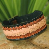 This leather bracelet is very attractive and molds to different sized wrists. It is a quality piece by a talented artisan.