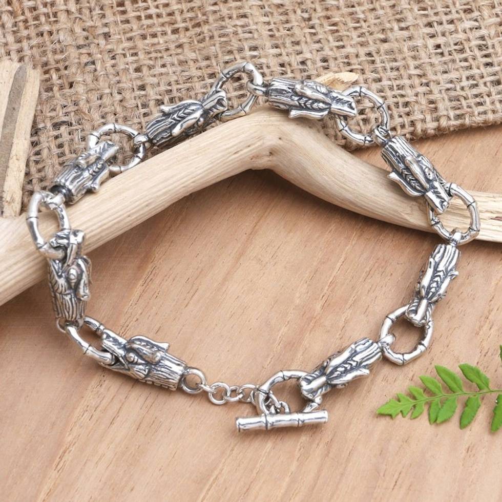 Men's Handmade Sterling Silver Link Bracelet 'Fire Breather' Item ID: 2671747844