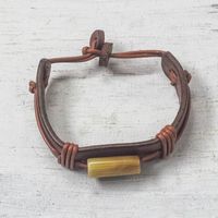 Men's Horn and Leather Wristband Bracelet from Ghana 'Bound' Item ID: 2671805657