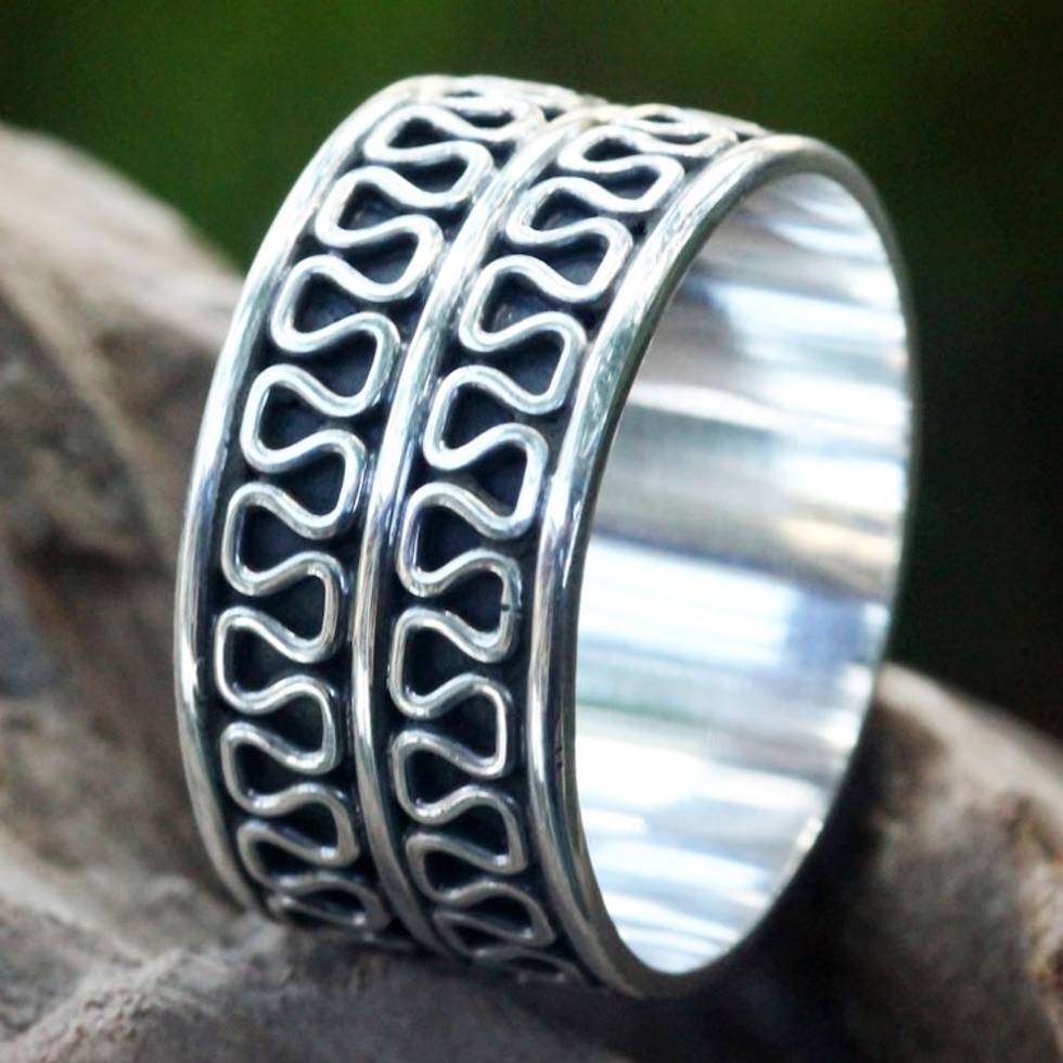 Men's Jewelry Sterling Silver Band Ring Artisan Crafted 'Ripple Tides' Item ID: 2671701432