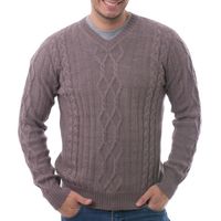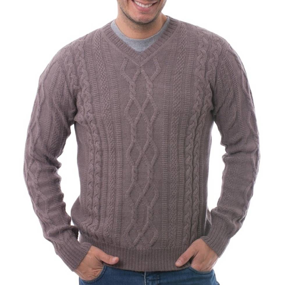 Men's Knit 100 Alpaca Pullover in Dusty Lavender from Peru 'Dusty Lavender Style' Item ID: 2669904182