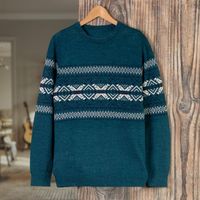 Men's Knit Teal Sweater Made from 100 Alpaca in Peru 'Andean Teal Sky' Item ID: 2670241998
