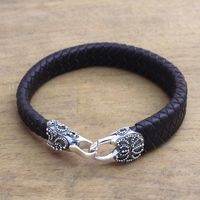 Men's Leather and Sterling Silver Bracelet in Brown 'Bun Claw in Brown' Item ID: 2669920636